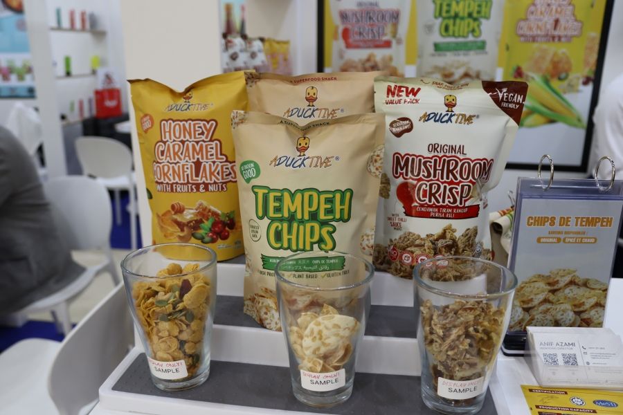 Tempeh chips are available in two flavors: original and hot and spicy. The Malaysian company is also showcasing its capabilities with oyster mushroom chips.